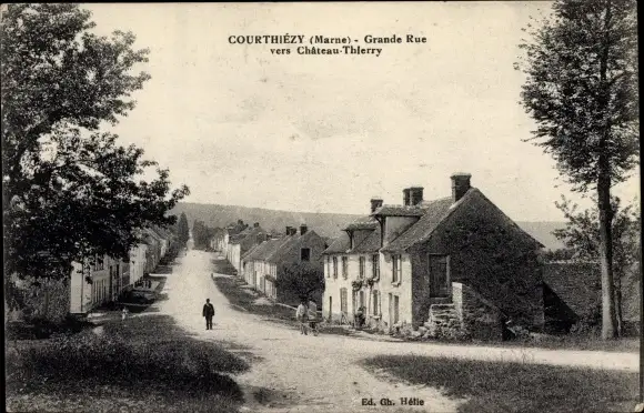 Ak Courthiezy Marne, Grande Rue vers Chateau-Thierry