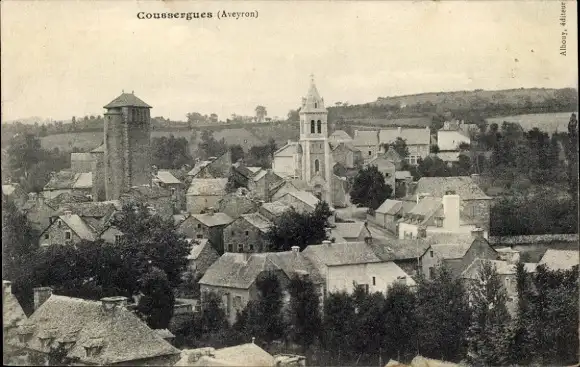 Ak Coussergues Aveyron, Teilansicht, Kirche