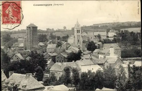 Ak Coussergues Aveyron, Teilansicht, Kirche