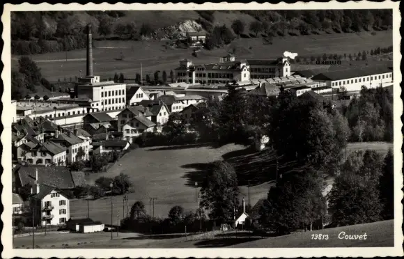 Ak Couvet Val de Travers Kanton Neuenburg, Teilansicht, Fabrik