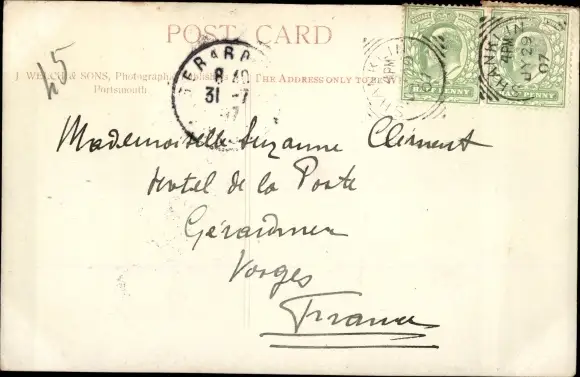 Zustand, siehe Scan, gelaufen, 1907 - ca 14 cm X 9 cm