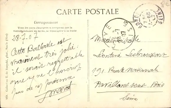 Zustand, siehe Scan, gelaufen, 1907 - ca 14 cm X 9 cm