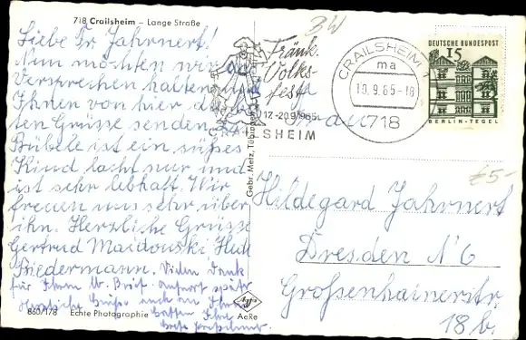 Zustand, siehe Scan, gelaufen, 1965 - ca 14 cm X 9 cm