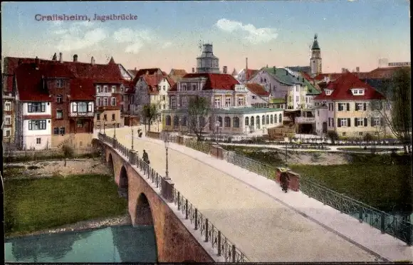 Ak Crailsheim in Württemberg, Teilansicht, Jagstbrücke