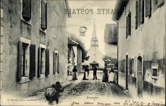 Ak Crassier Nyon Kanton Waadt, Straßenpartie mit Kirche