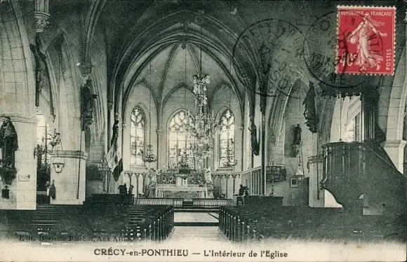 Ak Crécy en Ponthieu Somme, Kirche, Innenansicht