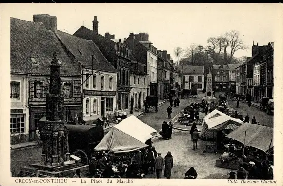 Ak Crécy en Ponthieu Somme, La Place du Marché, Marktplatz