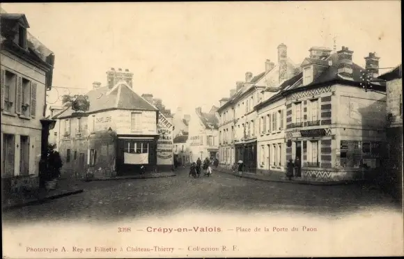 Ak Crépy in Valois Oise, Place de la Porte du Paon