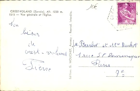 Ak Crest Voland Savoie, Teilansicht, Kirche