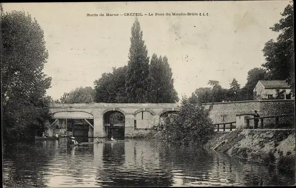 Ak Créteil Val de Marne, Le Pont du Moulin Brule