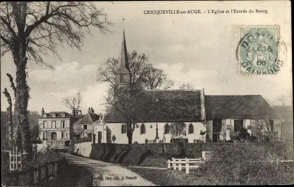 Ak Cricqueville en Auge Calvados, L'Eglise et l'Entree du Bourg