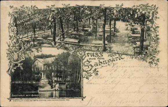 Ak Crimmitschau in Sachsen, Sahnpark, Forsthaus mit Gondelteich