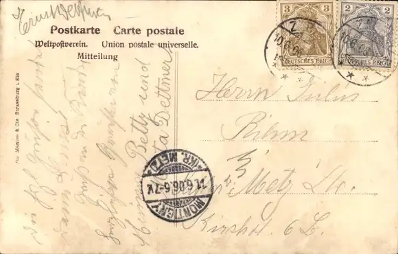 Zustand, siehe Scan, gelaufen, 1906 - ca 14 cm X 9 cm
