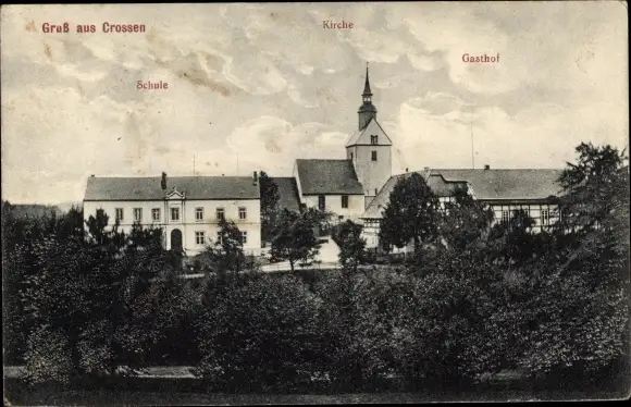 Ak Crossen Erlau in Sachsen, Schule, Kirche, Gasthof