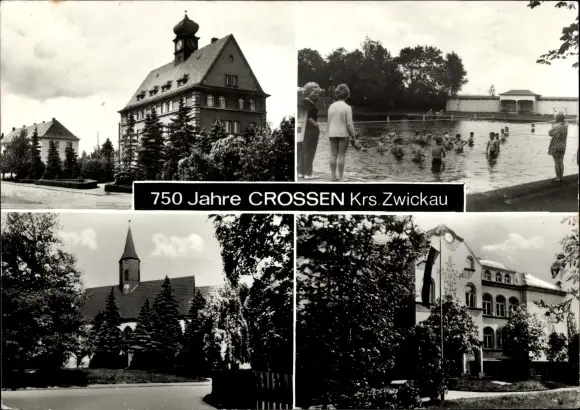 Ak Crossen Zwickau in Sachsen, 750 Jahre, Teilansichten, Freibad, Kirche