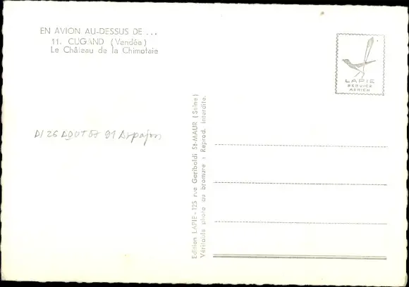 Ak Cugand Vendée, Le Chateau de la Chimotaie, Vogelschau