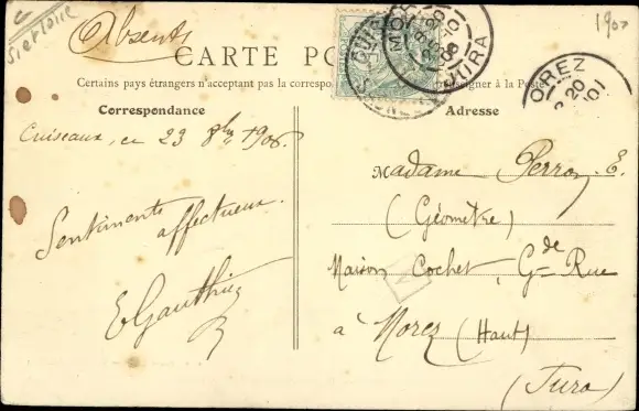 gelaufen 1906, fleckig, sonst guter Zustand - e: