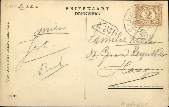 Zustand, siehe Scan, gelaufen, 1921 - ca 14 cm X 9 cm