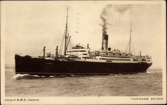 Ak Cunard Line, R.M.S. Laconia, Dampfschiff, Ansicht Backbord
