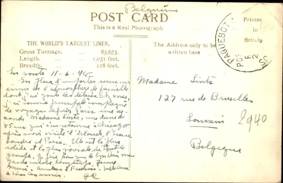 Ak Cunard White Star Line, RMS Queen Elizabeth, Dampfschiff