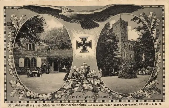 Ak Cunewalde in der Oberlausitz, Czorneboh, Bergwirtschaft, Aussichtsturm, Bismarckdenkmal