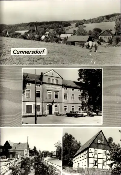Ak Cunnersdorf Pirna in Sachsen, Teilansicht, Gasthof Erbgericht, Fachwerkhaus