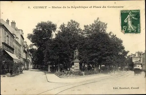Ak Cusset Allier, Statue de la République et Place du Centenaire