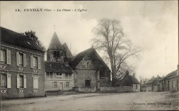 Ak Cuvilly Oise, La Place, L'Eglise