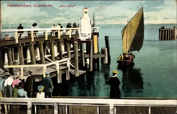 Ak Cuxhaven, Alte Liebe, Steg, Signalturm