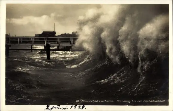 Ak Cuxhaven, Brandung bei der Seebadeanstalt