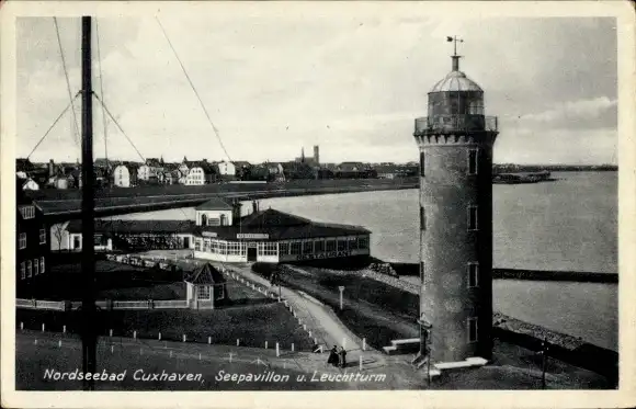Ak Cuxhaven, Seepavillon und Leuchtturm