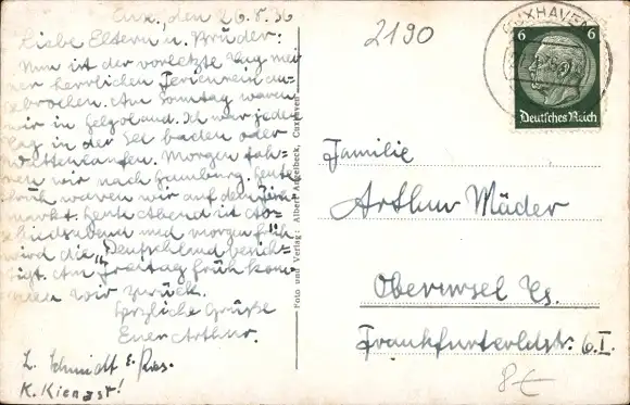 Zustand, siehe Scan, gelaufen, 1936 - ca 14 cm X 9 cm