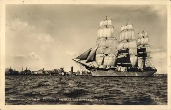 Ak Cuxhaven, Segelschiff, 3-Mast-Bark