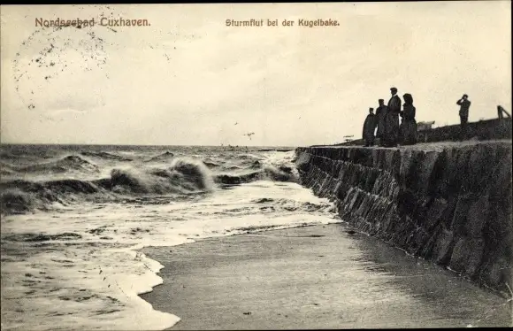 Ak Cuxhaven in Niedersachsen, Sturmflut bei der Kugelbake