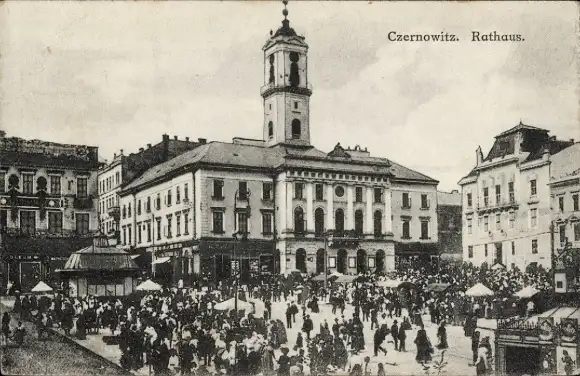 Ak Czernowitz Tschernowitz Cernăuți Ukraine, Rathaus, Menschenmenge