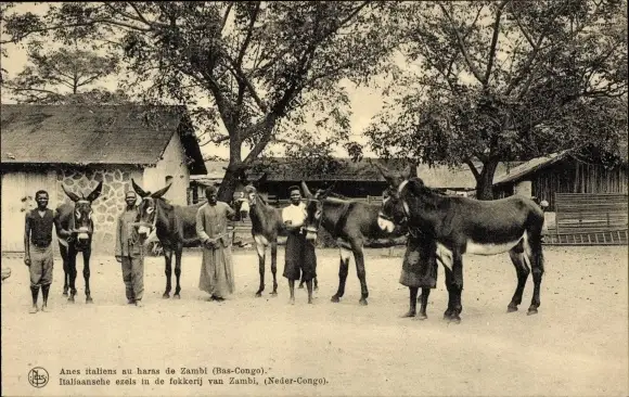 Ak DR Kongo, Italiaansche Ezels in de fokkerij van Zambi
