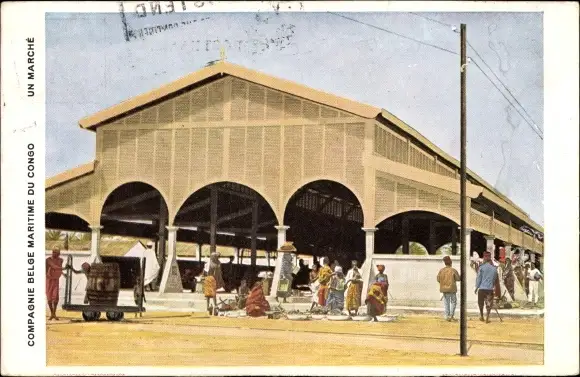 Ak DR Kongo Zaire, Belgische Seefahrtsgesellschaft, Ein Markt