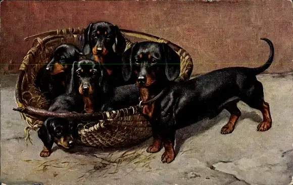 Ansichtskarte, Postkarte, Korbflechter, Korb flechten, Korbhandel, Korbhändler, Korbmacher