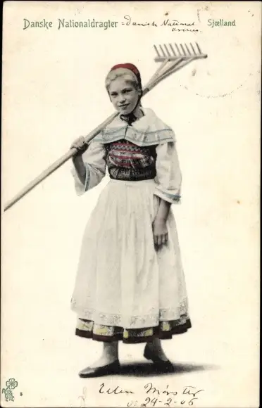 Ak Dänemark, Dänisches Bauernmädchen, Harke