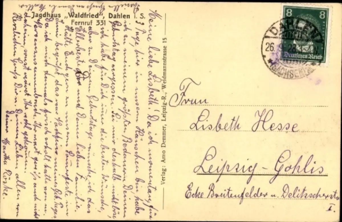Ak Dahlen in Sachsen, Jagdhaus Waldfried