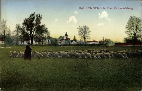 Ak Dahlenberg in der Dübener Heide Trossin, Hirt mit Schafherde