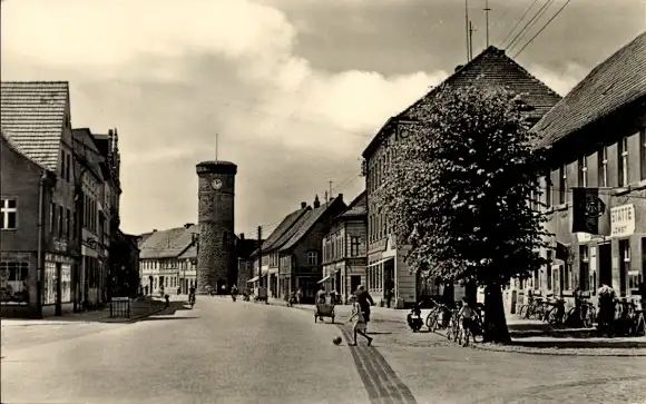 Ak Dahme in der Mark, Am Vogelturm, spielende Kinder, Fahne