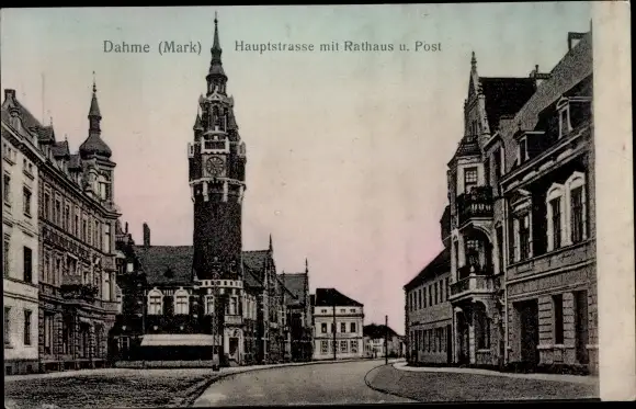 Ak Dahme in der Mark, Hauptstraße mit Rathaus und Post