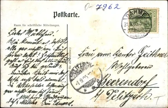 Zustand, siehe Scan, gelaufen, 1905 - ca 14 cm X 9 cm