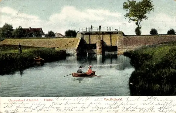Ak Dahme in der Mark, Schleuse, Ruderboot