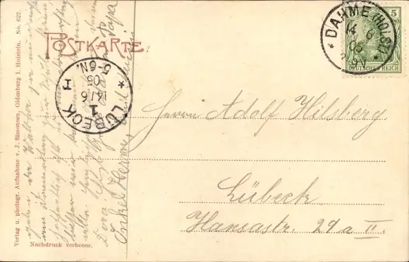 Zustand, siehe Scan, gelaufen, 1905 - ca 14 cm X 9 cm