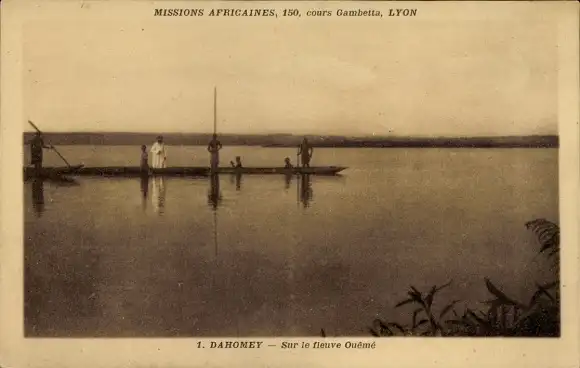Ak Dahomey Benin, Boot von Missionaren auf dem Fluss Ouémé