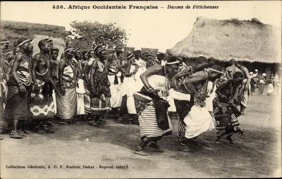 Ak Dahomey Benin, Danses de Feticheuses, Heilerinnen beim Tanz