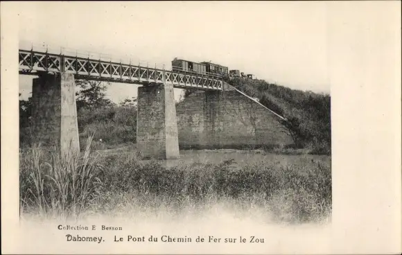 Ak Dahomey Benin, Die Eisenbahnbrücke über den Zou