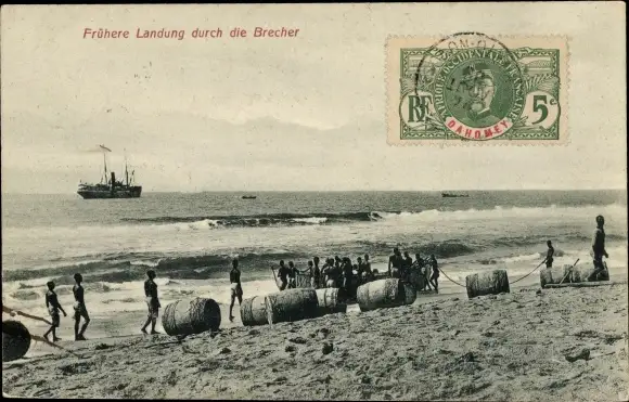 Ak Dahomey Benin, Frühere Landung durch die Brecher